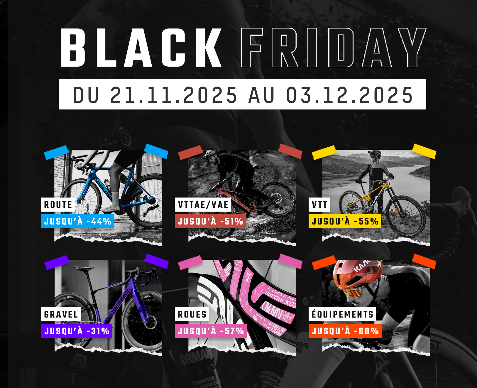 En suivant nos réseaux sociaux, vous ne raterez aucune offre du Black Friday et découvrirez les nouveautés en cyclisme avant tout le monde !
