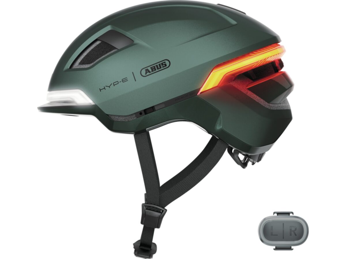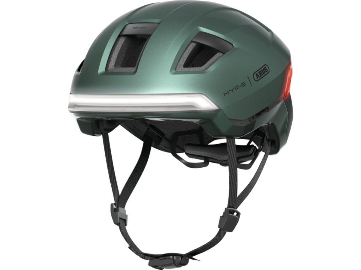 • Casque urbain Abus HYP-E jungle green – un casque urbain moderne avec éclairage 360° intégré pour une visibilité maximale en ville.
